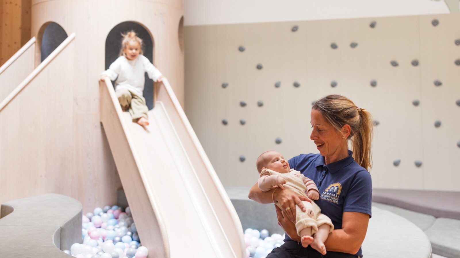 From babies up to teenagers – children of all ages enjoy varied entertainment at the baby and children’s world of Leading Family Hotel Bär. There’s heaps for your kids to see and do, ranging from a five-storey soft play area with “Clip’n Climb” climbing facilities to a sports hall and our exclusive Bear’s Beach Club. Of course, all facilities are supervised by qualified childminders.