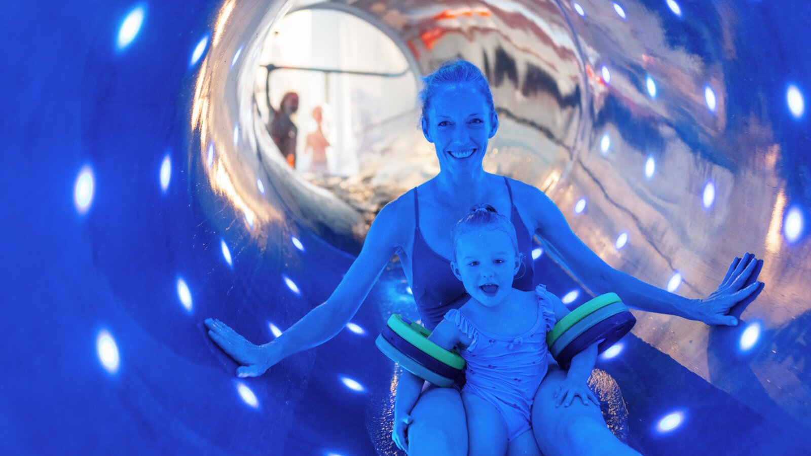 Are you team indoor pool or outdoor pool? At the Bear’s water world, you can have both! The spacious outdoor pool area is a great place to enjoy water fun and fresh air – surrounded by breathtaking mountain views. All year round, the water has a temperature of 31 degrees Celsius. Plus, the outdoor area, the family spa and the family sauna are all connected by a swim tunnel. At the indoor pool, guests can enjoy a 96-metre speed water slide, providing plenty of action also on rainy days.